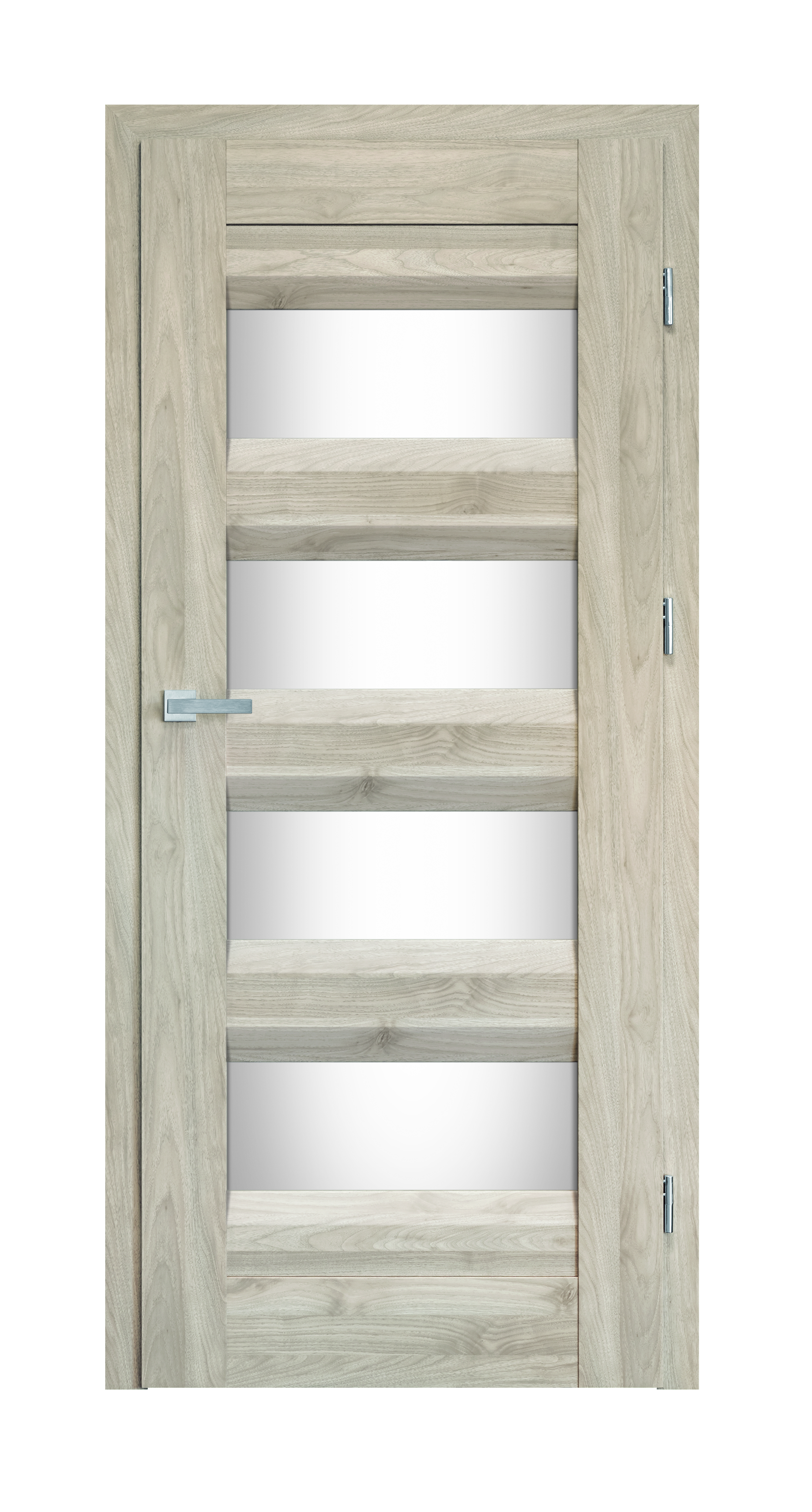 Model LUKKA cechuje wąskie przeszklenie przy klamce. Szybę bezpieczną można zastąpić płytą malowaną lub płytą w wykończeniu DI MODA, NATURA