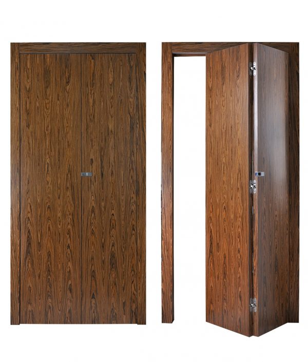 W modelu TORINO dwie wstawki oddzielają poprzecznie ułożoną pośrodku skrzydła okleinę NATURA od okleiny ułożonej pionowo na brzegach skrzydła.